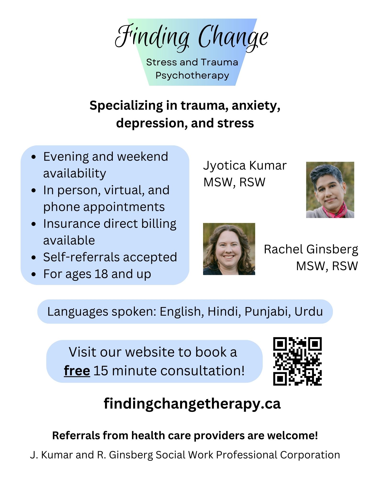We serve residents of Ontario, ages 18 and up.